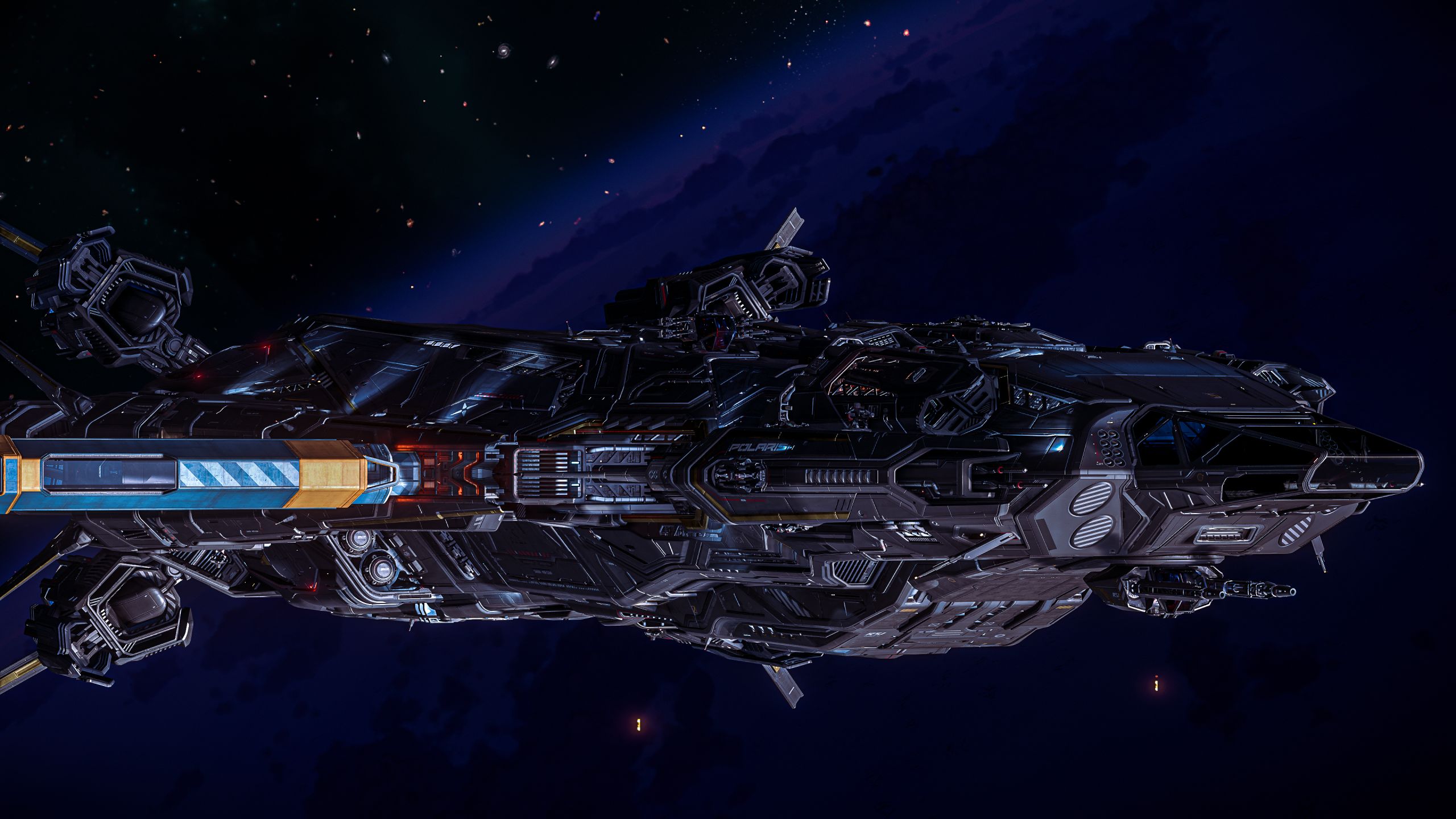 A compact capital ship with the heart of a destroyer, the Polaris is the tip of the spear for coordinated strike groups and security fleets. Outfitted with a devastating torpedo bay, defensive turrets, and hangar support for a single small craft, it’s built to engage larger threats head-on or provide overwatch in dangerous territories. Whether leading the charge or anchoring a convoy, the Polaris brings big-gun energy in a sleek, tactical package.